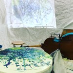 が、ここで断っておきますがあくまで私は絵描き。画家として絵を描くことが主体。音は絵の時間軸を共有するとっかかりであり、音の痕跡としての絵画というのもそのとき自分がしていたのは少し異なります。しかも模索中で、とても実験的なもの。というのも絵画表現に行き詰まっていてなんとか様々なことを体験し様々な人と出会うことで、いち画家というよりは現代美術家でありたいと願いなんとかフィードバックできないものか‥という中のことでした。(実際にその数年かの油彩の作品はキャンバスにマレットで描いています)